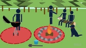 When you are in your yard keep 3 feet around your grill and your campfire. This helps to protect children and pets. Always keep at least 10 feet between the grill and any structures.